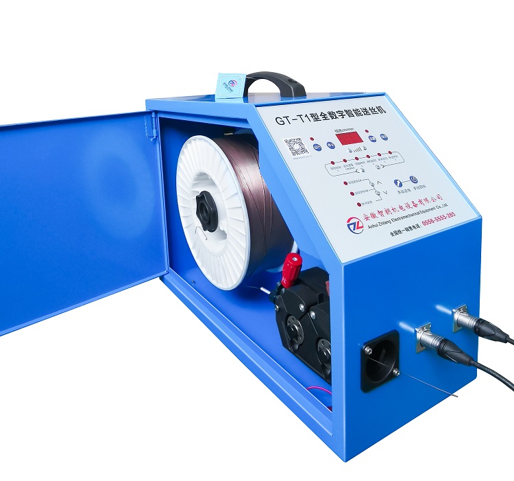 送絲機(jī)是在微電腦控制下,可以根據(jù)焊機(jī)操作工設(shè)定的參數(shù),連續(xù)穩(wěn)定的送出焊絲的自動(dòng)化送絲裝置。送絲是焊接過(guò)程中非常重要的一個(gè)操作環(huán)節(jié),手工氬弧焊焊接的送絲方法多采用焊工手指捻動(dòng)焊絲來(lái)完成送絲過(guò)程,焊工操作送絲時(shí)非常不方便,因此,手工送絲準(zhǔn)確性差、一致性差、送絲不穩(wěn)定,從而導(dǎo)致了焊接生產(chǎn)效率低下,焊接成型一致性差。另外,焊工手持焊絲長(zhǎng)度有限,長(zhǎng)時(shí)間焊接時(shí)需要頻繁拿取焊絲,焊接效率較低,且每段焊絲焊接完成時(shí)都會(huì)留存一小段焊絲無(wú)法使用,造成了浪費(fèi)。